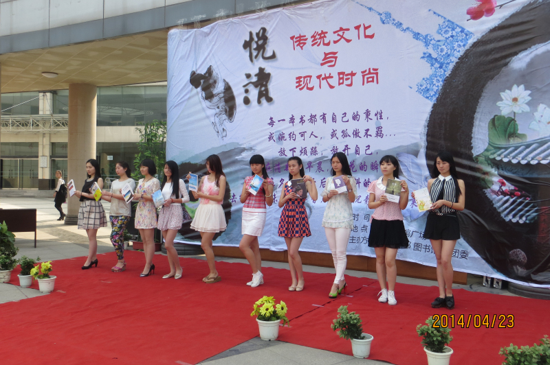 王琳:活动啊,有协助图书馆举办过每年的“423世界读书日”,还有去年的“图书T台秀”,“你选我购”,“图书漂流”,还有每年的“阅读之星”评选活动我们也会协助。我们的两大特色活动就是其中的世界读书日系列活动和图书漂流活动。