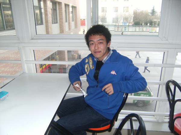 第一次接受采访,虽然知道都是同学,他还是显得有点局促,不过聊上几句,气氛就轻松多了。在交谈中,我们了解到这个看上去很平凡的大一男孩已经在学校各项才艺大赛中获得众多奖项,,才气让我们颇为叹服:他刚入学就参加了《才子杯征文大赛》并获得了一等奖,精心编演的话剧《黑幕》获得“材料之星”优秀节目二等奖,还有“主持人大赛”优秀主持人奖等六项荣誉奖。谈到人生与生活,我们问他有何座右铭,他打趣的说:“行走江湖,靠的就是一个‘稳’字!”看似玩笑,可细细想来确别有一番深意。的确,一个“稳”字,激励人稳步前进,提醒人戒除躁动,认认真真做事,踏踏实实做人,一步一个脚印,才能打好根基。在聊到他小时候的玩伴和以前的同学时,一串串幸福的言语洋溢于他的嘴边,那些美好的往事像是拂去尘埃的珍珠,在回忆里闪闪发光....“曾经一起结为兄弟手足,一起分享快乐共同承担挫折.....曾经一起驱车去烧烤,在湖色山光里留下青春的梦想.....这样一个大男生,在面对人生中第一次的劳燕分飞之余,对彼此情谊的珍重,也让我们想起自己曾经的欢乐时光。问到快放假了,自己在学校最大的感触是什么,他轻微低下头说:“只想回家,想家了。”第一次离家近半年,开始怀念家乡的味道,好久不见了的爸爸妈妈,熟悉的邻居和铁胆相照的结拜兄弟。