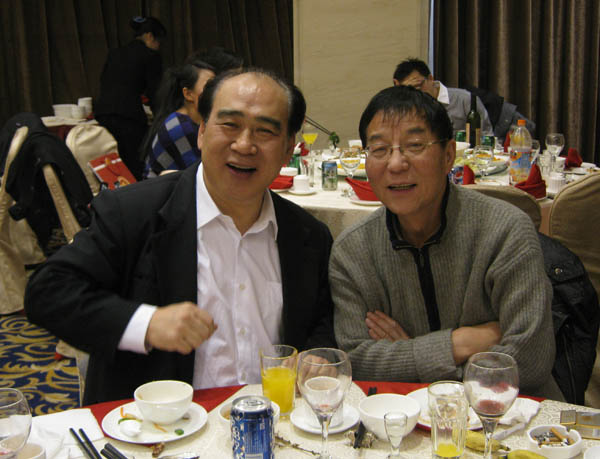 任世和校友(左)与独角戏表演家“王木犊”(原名石国庆)在一起
