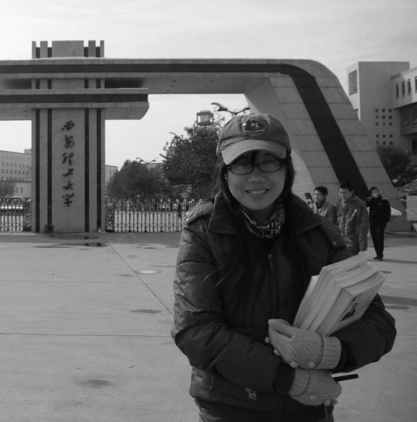 起初的她,显得比较腼腆,不知道该说些什么,而我这个在生人面前不怎么善言语的记者也是稍有木讷,往出挤着一个个问题。那个尴尬啊!慢慢的我们也就谈开了,一个活泼且热心的女孩,脸上总是挂着甜甜的笑。她来自山东,却被潜移默化的染上了东北音,那么可爱,那么好听。和她说话的时候,你总可以感受到从她身上散发出来的朴实与纯真。
