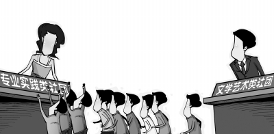 宋老师的担心不是多余的。例如,中国人民大学共有注册社团105个,文学类社团不足10个,其中文学创作类社团仅有2个。山东大学(威海)共有注册社团139个,其中文学类社团仅有1个。而拥有五四文学社这样历史悠久、影响广泛的文学类社团的北京大学,今年参与招新的社团共有近150个,其中文学创作类社团也只有2个。同时,各校的文学社团人数大部分维持在20~60人左右,60人以上的社团较为少见。可见,无论数量还是规模,文学社团在大学生社团中都属于冷门。