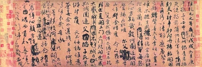 众相万殊的书法风格,呈现一派姚黄魏紫的动人景象,玩之不觉为倦,览之莫识其端。“专用为务,钻坚仰高,忘其疲劳,夕惕不息,仄不暇食。十日一笔,月数丸墨。领袖如皂,唇齿常黑。虽处众座,不遑谈戏,展指画地,以草刿壁,臂穿皮刮,指摧爪折,见鳃出血,犹不休辍。”(赵壹《非草书》)