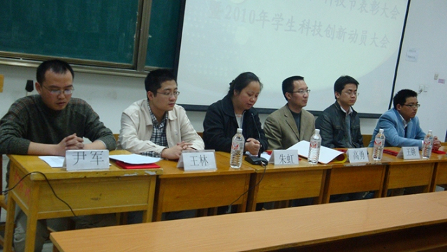 本报讯 3月30日晚7:30,自动化学院“第十八届理奥杯科技节闭幕式暨2010年科技创新活动动员大会”在曲江教10-401准时举行。自动化学院副书记、副院长高勇老师,学生科协指导老师朱虹教授,学工办主任王林老师、院团委书记王锵老师以及主管学生科技工作的尹军老师、翟羽翔老师等老师出席了本次大会。