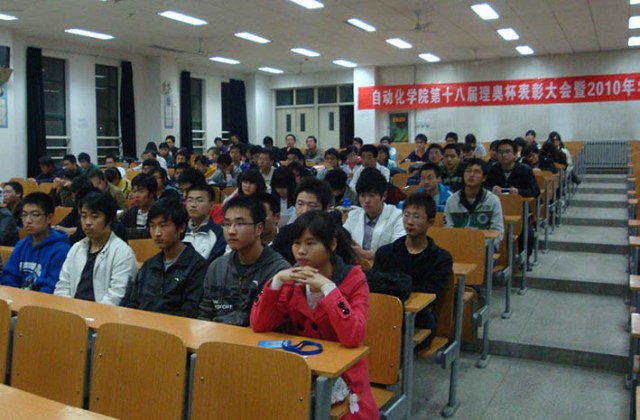 大会上,首先高勇老师作重要讲话。他对本次理奥杯的成功举办及科协一直以来的工作表示肯定,并对2010年的科技竞赛作了简要介绍,鼓励大家踊跃参加。接下来,朱老师发表讲话,她对科协“以大带小”学习培训的一贯传统表示赞许,希望同学们再接再厉,同时对09级同学提出殷切期望。朱老师表示,本次理奥杯参赛同学的积极踊跃和答辩时的盛大场面令她感动,最后她对有关科技活动的相关信息进行介绍,鼓励同学们抓住机会,积极争取。