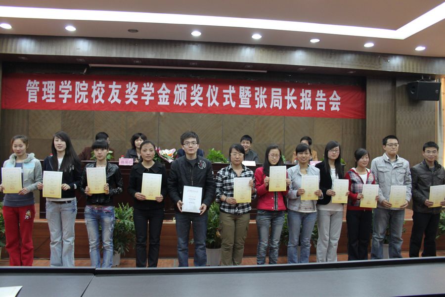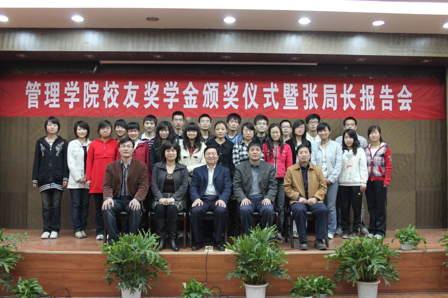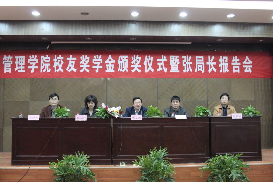 本报讯 4月8日下午,经济与管理学院校友奖学金颁奖仪式暨校友报告会在教十一楼模拟法庭隆重举行。出席颁奖仪式的嘉宾有:中煤航测遥感局张文若局长、经济与管理学院院长党兴华教授、副院长陈菊红教授、副书记岳新利老师。学工办主任朱中华老师主持了大会。