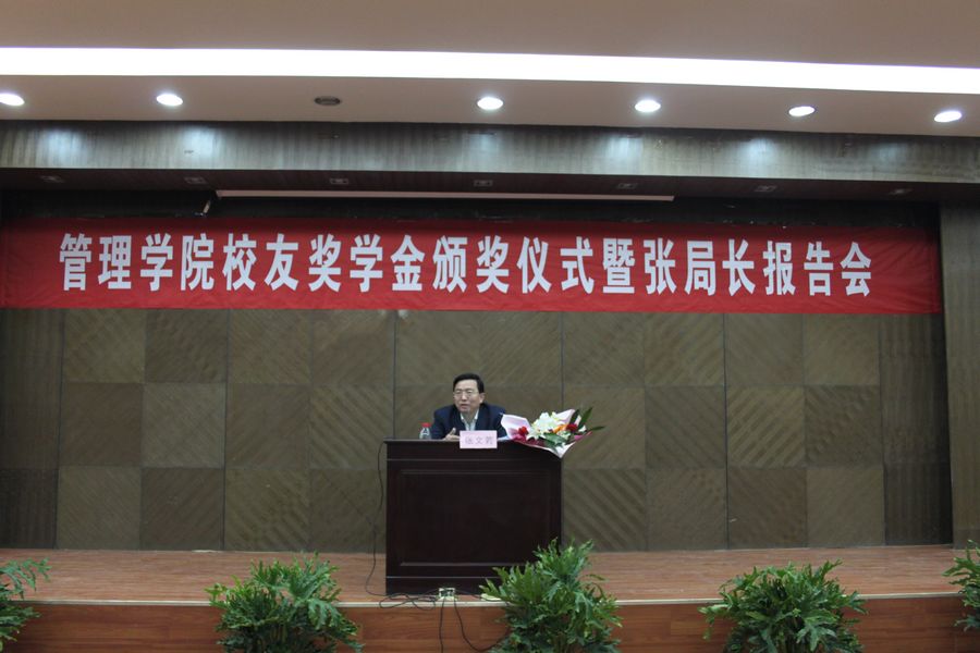 党兴华院长首先感谢校友张文若局长在自己事业成功之余仍不忘母校、回报母校。院长向同学们介绍了张局长的成长经历,希望获奖与没获奖的同学都能够向张局长学习,保持良好的心态,继续努力、戒骄戒躁。