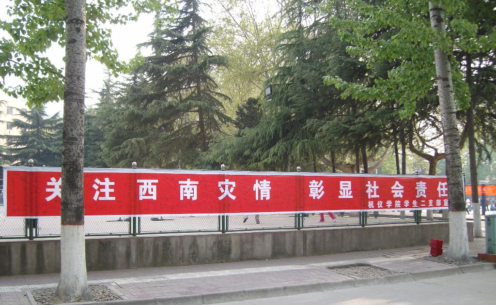 响应国家的号召,捐献自己的爱心,机仪学院学生党员二支部全体党员于2010年4月9日在教一楼下组织主题为“关注西南旱情、彰显社会责任”的主题党组织生活。