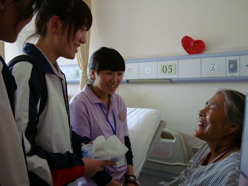 同学们在医院接待室与伤员代表一起观看了同学们精心准备的为玉树加油的视频,大家手拉手一起唱《阳光总在风雨后》,现场交织在爱与感动的气氛当中。之后,在志愿者和医生的陪同下,学生代表来到病房,亲切看望了玉树病人,把同学们带过来的礼物交到他们手中,在场的医生和病人都被同学们的这种爱的热情深深感动。