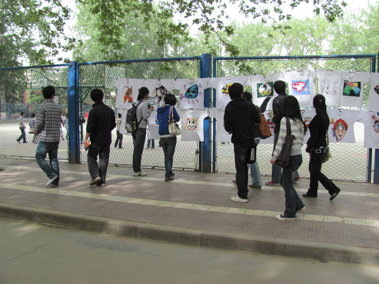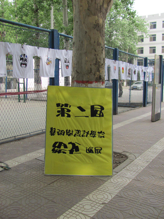 本报讯 校运会开幕式上艺术与设计学院学生的手绘T恤曾引起了全校师生的普遍关注。为了让大家有机会近距离欣赏这些作品,艺术与设计学院团委学生会在4月28日,29日两天在金花校区校园主干道和家属区主干道两边举行了运动会T恤巡展活动。