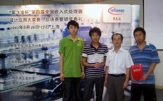 该项赛事由英飞凌科技(中国)有限公司主办,于2009年10月在全国范围内启动,分为初赛、复赛和总决赛3个阶段。大赛在全国设立10个赛点(我校为赛点之一),经过初赛选拔,有177支队伍晋级复赛,最终有包括西安交通大学、华中科技大学、同济大学、哈尔滨工业大学、北京理工大学、合肥工业大学、福州大学、西安理工大学等高校的13支代表队进入全国总决赛。总决赛分作品介绍、现场测试和答辩三个环节,我校参赛队凭借完善的功能设计、优良的性能指标、创新性的控制算法、完备的技术资料和出色的答辩摘取了本次大奖赛的桂冠。