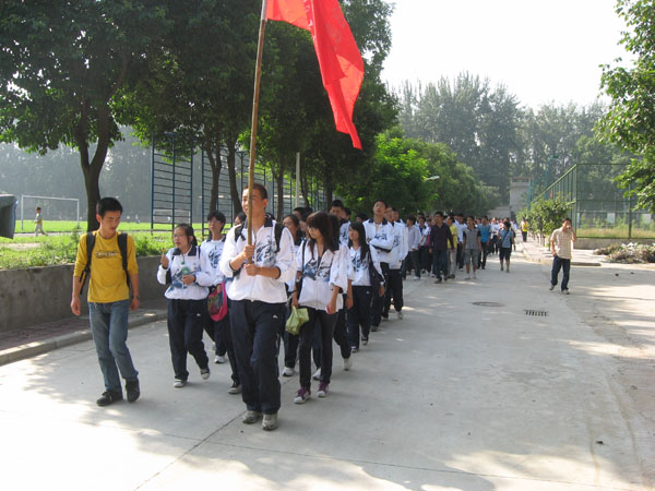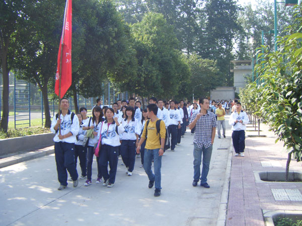 128位学生会新成员统一着装校服坐车前往金花校区。到达金花校区后,大家以南门作为参观活动的起点。各个部门列着整齐的队伍,在学生会主席团以及各部门部长的悉心引领和耐心讲解下,依次参观了体育馆,体育场,图书馆,各教学楼,领略了校园的风景,感受到了校园内良好的人文气息以及浓厚的学习氛围。一路上学生会的新成员们认真参观每一个经过的地方,用手中的相机记录下一个个美好的瞬间。最后,学生会全体成员于东门口合影留念。