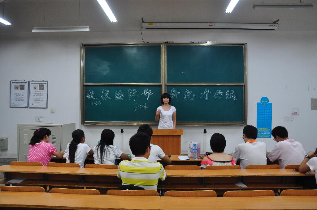 面试初始,由校报记者团团长贾斌同学向前来参加面试的同学简述了校报的历史及最近几年来取得的成绩,接下来进入面试环节,参加面试的同学依次做了自我介绍,阐明了想加入校报记者团的原因,并接受了记者团成员的提问。