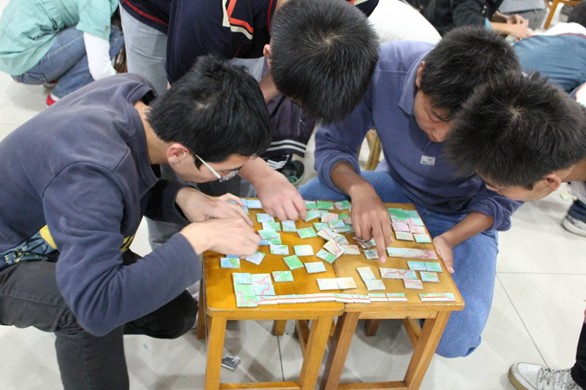 本次活动共有三个板块,首先是百人拼图比赛,在“唱响未来”歌手大赛获奖选手朱国栋同学的吉他弹唱中,同学们按规则进行拼图比赛,经过激烈的角逐,决出了一、二、三等奖,获奖选手接受了主持人的采访并为获奖选手颁发了奖品及奖状;随后,同学们以青春的名义庄严宣誓,勿忘国耻,艰苦奋斗,争做合格大学生;最后,同学们写下自己对祖国的深深祝福,并贴在宣传板上。