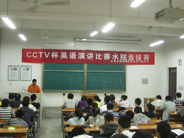 本报讯 9月27日晚7:30,水利水电学院举办的以“what is my top concern”为主题的英语演讲比赛于半在教10-206举行。水电学院团委学生会主席陈明、副主席董静、校广播台英语部部长亲临观看。