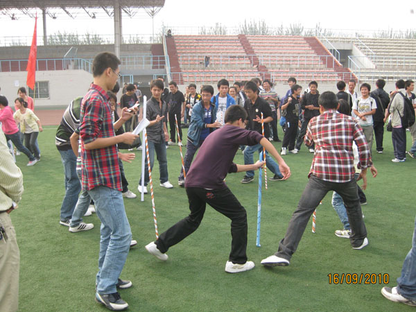 为了丰富大家的课外生活,提高大家的集体意识和协作意识。10月17日下午15:00水利水电学院组织大一、大二全体同学在曲江校区操场举行素质拓展活动。亲临活动的有水电学院团委刘敏老师及学工办各辅导员老师。目的是为了加强同学们的集体动手、参与能力,更能培养大家的协作精神,更能体现年轻人的热情与活力。