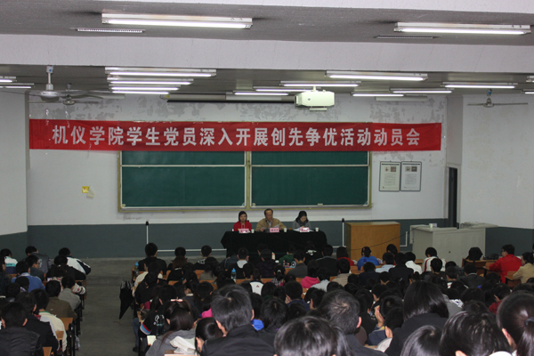 本报讯 10月24日,机仪学院在6-501举行学生党员深入开展创先争优活动动员大会。机仪学院院党委书记傅卫平、学工办主任马卫华出席大会并讲话。