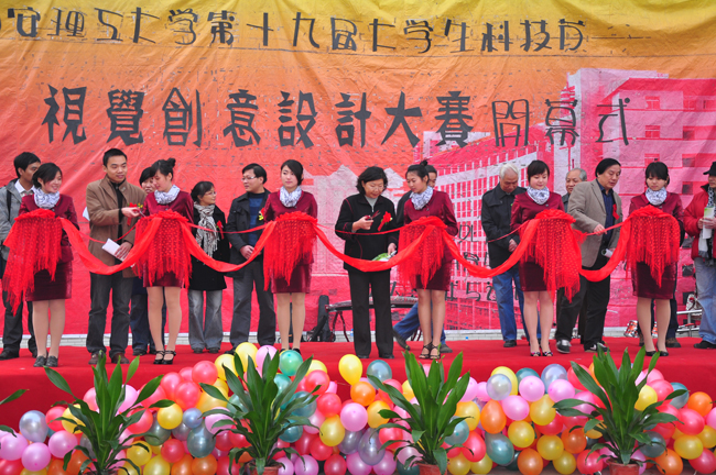 演出结束后,王磊介绍了本次大赛的筹备以及作品情况,详细阐述了本次大赛——“低碳·环保·绿色生活”和“天人长安·创意自然” 的主题。吉晓民在讲话中表示,通过此次大赛可以进一步地展现大学生的艺术才能,陶冶同学们的情操,凸显我校校园文化特色和学生的个性特长,同时也丰富了校园文化生活和各学院的交流,推动校园文化建设。杨萍副书记宣布视觉创意设计大赛开幕。