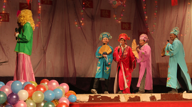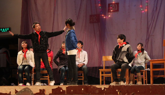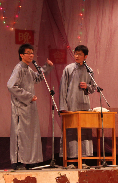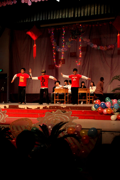 在播放完校广播台的全体同学为大家精心录制的短片后,伴随着一句每天都会准时听到的“西安理工大学广播台现在开始播音”,晚会在热烈的掌声中正式开始。从校广播台各部代表表演的开场舞《舞动青春》,到播音部同学们的朗诵《我们相信》,给大家展示了他们的青春动感、活泼自信。随后,由校电视台表演的小品《轰天雷》,穿越时空的经典人物张飞、洪七公、猪八戒,还有整形过的沙僧,再加上夸张的动作和时下网络流行搞笑语,引起在座的观众阵阵欢笑。校报编辑部同学们给大家表演了一曲优美的舞蹈华尔兹。校广播台播音部、技术部、编辑部、英语部分别从自身的特色出发,组织编排了不同类型的节目,从激情的小提琴弹奏到动感的街舞,从精彩的歌曲串唱《蒲公英的约定》到幽默的小品表演四大才子《面试的那些事儿》,从温馨的合唱《小夫妻》到话剧畅想《醒着的梦,80后的回忆》,让晚会高潮迭起。其中对口相声《编辑部的故事》可谓一大亮点,演员扎实的唱功、伶俐的山东快板和风趣幽默的台词,赢得了台下同学阵阵欢呼。