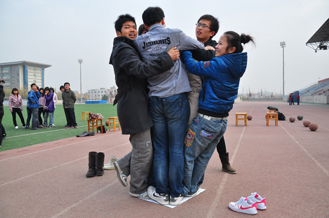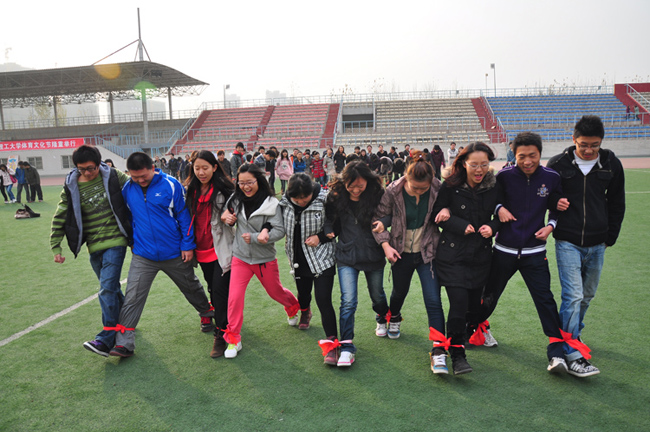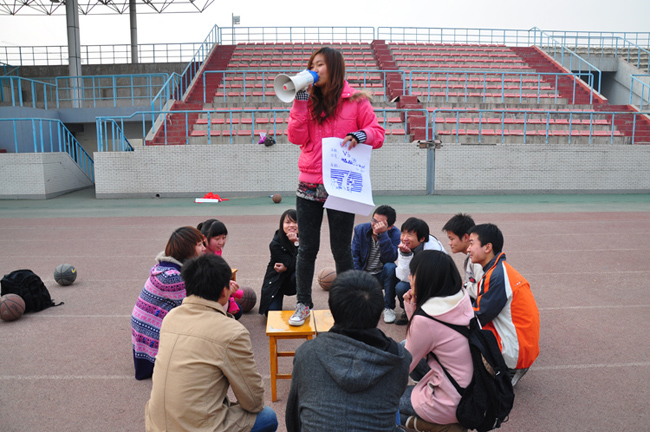 本报讯 11月27日下午2:30,艺术与设计学院10级班干培训的第三课——拓展实践活动在操场举行。