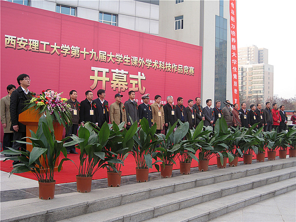本报讯 12月3日下午,第十九届大学生课外学术科技作品竞赛开幕式在我校曲江校区逸夫科技馆前举行,共有17名教授和200多名学生参加。