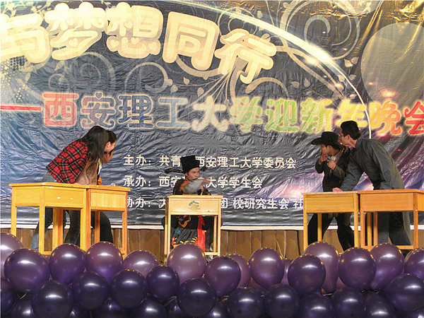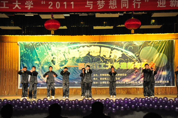 本报讯 12月26日晚,曲江校区大学生活动中心成了欢乐的海洋,欢呼声,掌声此起彼伏,众多学子相聚于此,观看西安理工大学“2011与梦想同行”迎新年晚会。