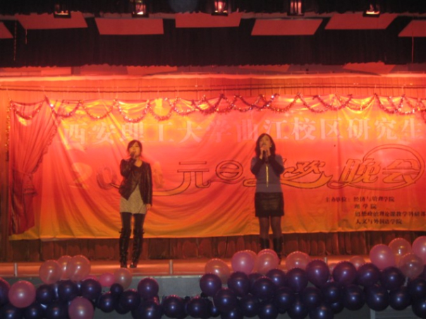 在一场活力十足,激情四射的乐队演唱之后,2011年研究生元旦联欢晚会正式开始。青春洋溢的主持人用他们饱含热情的语调为晚会讲述了一段精彩的开场白,并介绍了到场的各位领导与嘉宾。接着三名活