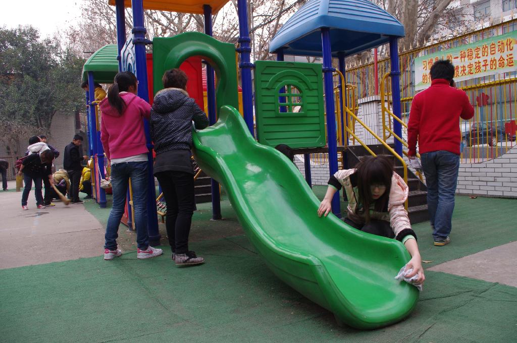 本报讯 三月,乍暖还寒,却挡不住印包学子“雷锋月”里学雷锋的热情。为了响应学院团委关于弘扬雷锋精神,倡导“奉献、发展、互助”美好品德的号召,3月5日早上9点,印包学院团委学生会的同学们来到西安理工大学附属幼儿园进行清扫活动。一进幼儿园,同学们就卷起袖子,各司其职,认真清理起来。抹洗玩具,清洁地面卫生,粘贴墙画……,尽管尘土飞扬,冰水刺骨,尽管工作琐碎,但没有抱怨,没有懈怠,有的只是同学们热火朝天的劳动场面。终于,在大家共同努力下,幼儿园被打扫的整洁如新,想到小朋友们可以在窗明几净的环境下学习生活,同学们都露出满意的笑容。