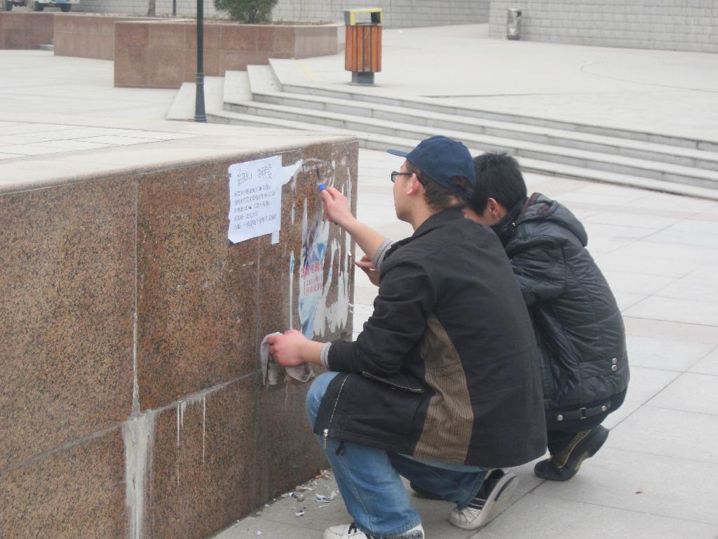 下午2点,在团委学生会的带领下,同学们在校园里充当起了校园美化师的角色,对生活区主干道、垃圾箱、宣传栏、大理石花园等公共设施进行了认真清洁。一桶桶冰凉的水,一双双年轻的手,留下的是生活区环境的美化;一条条干净的马路,一个个整洁的宣传栏,映射出的是同学们的爱心和奉献。