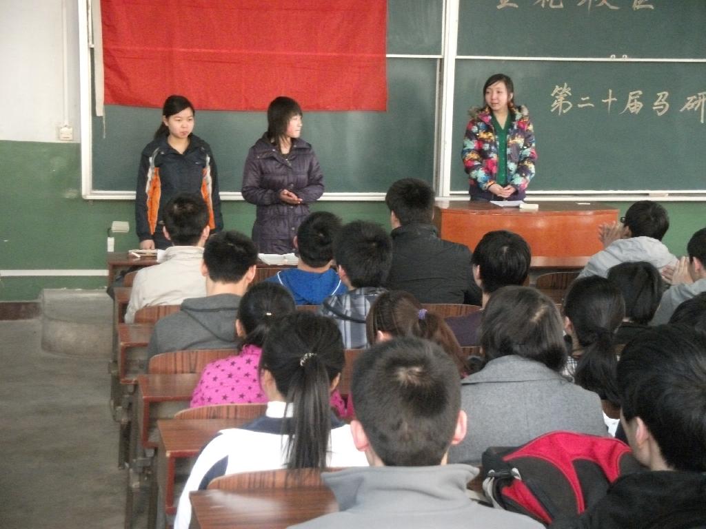 会议开始,王佳老师就机仪学院马研会的开班目的,学习意义,学习内容,开展形式做了全面介绍,并对同学们在马研会的学习表达了自己的殷切希望,希望他们能通过马研会完善自己的人生观、价值观,提高对党的认识,升华自身的党性修养。她强调本期马研会的学习内容要紧密结合时事,关心社会动态,并剖析了当今社会的一些热点现象和争论激烈的问题,希望同学们能够从多个角度和多种渠道了解事情的真相,不要人云亦云,要养成冷静、独立思考的习惯,培养辨伪存真的能力。