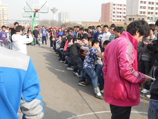 本报讯 2011年3月13日机仪学院团委在曲江校区新篮球场举行了一年一度的拔河比赛。