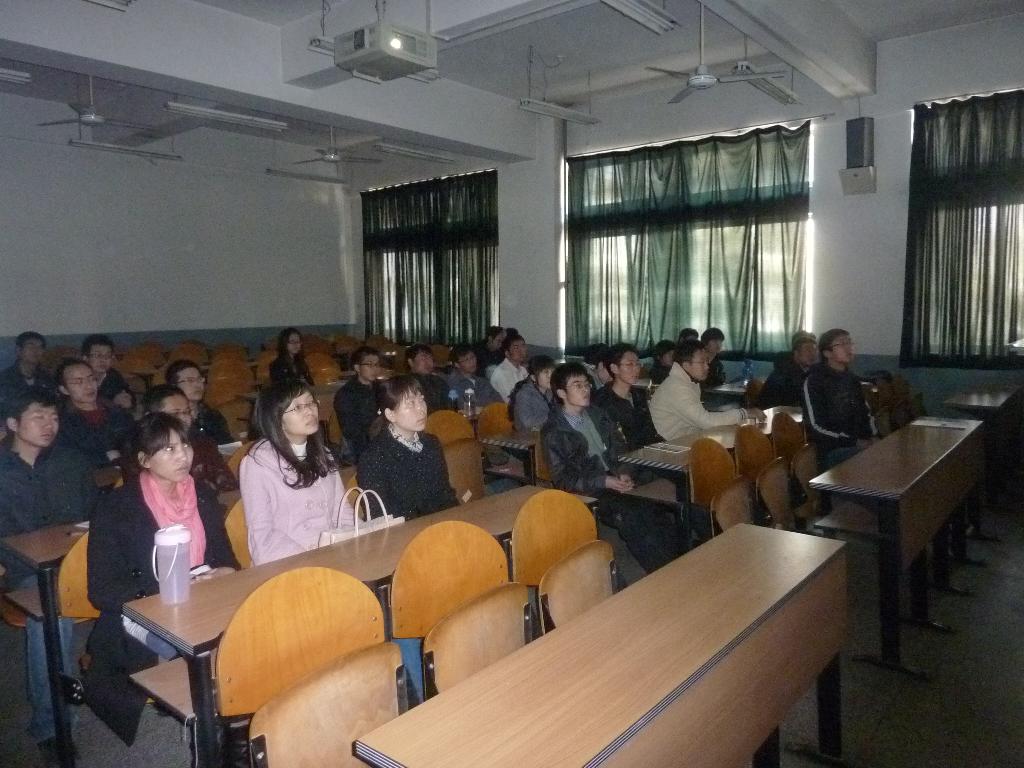 在观看完“两会”视频后,大家针对个人关注的相关“两会”议题发表个人的观点。刘向斌同志,他针对“两会”中关注的就业问题谈了一些自己的看法,分别从社会、企业和大学生向我们分析了将来的就业问题。刘聪同志针对“两会”中提及的“低碳经济”议题的报告谈了一些自己的感想,讲解了低碳经济的重要性,及其对我国的将来可持续发展的深远意义。王小雪同志在发言中着重谈了自己对“两会”中提及的教育机会平等问题的看法。
