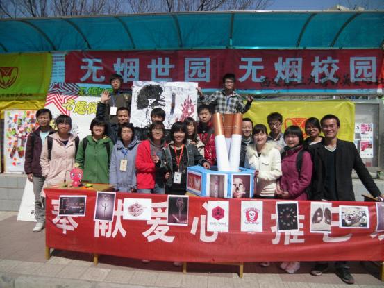在活动现场,来自爱心社的成员们向大家展示了有关吸烟有害键康的图片,吸引来大量同学观看。由爱心社成员们用废弃的烟盒组成的“控烟”两个字成为活动的亮点,在上面,贴满了同学们写下的告诫大家不要吸烟的话和自己对烟的态度的爱心卡片。