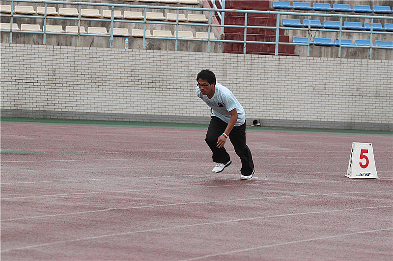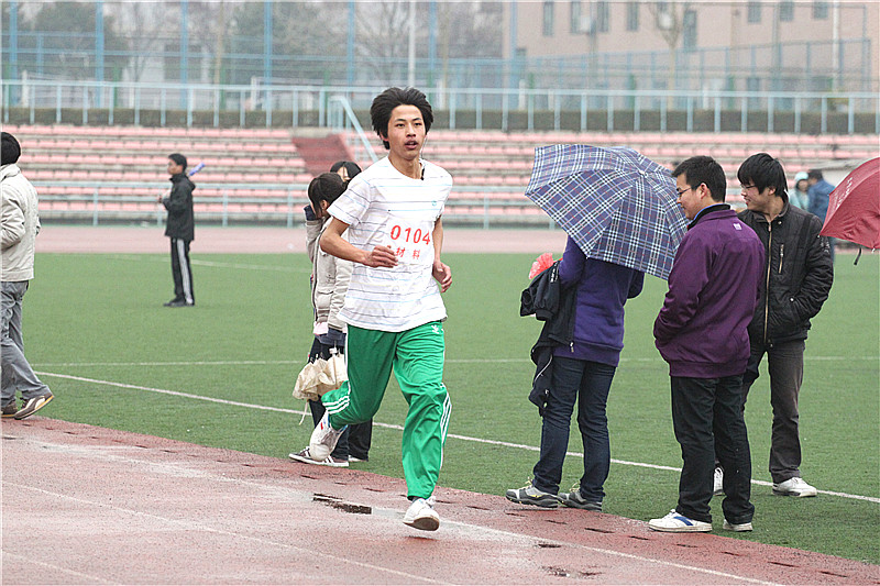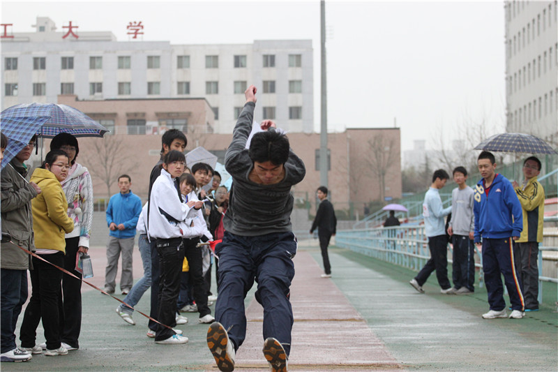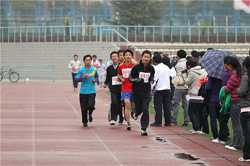 运动会上,材料学院的运动员们在铅球、跳高、跳远、短跑、长跑、标枪等十多个项目上展开了激烈角逐。每个项目分为男子组和女子组。当天虽然天空下着淅沥细雨,但赛场上的运动健儿们仍旧激情蓬勃,奋力拼搏着;场内气氛紧张,场外也一点也不冷清,啦啦队助威声、加油声此起彼伏;主持人追踪播报着整个比赛进程,热情洋溢地宣读着来自各班撰写的通讯员稿件,整个场面热闹非凡。男子5000米长跑在一阵阵的呐喊声中把整个运动会推向了高潮。