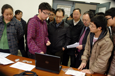 本次检查是我校备战第十二届全国“挑战杯”竞赛中“4次评审、3次检查、2次资助、1次表彰”中的第三次检查。参加本次检查的34件学生课外学术科技作品来自材料、机仪、自动化、水院、管院、理学院、印包、计算机、艺术9个学院。其中机械与控制类作品11件、信息技术类作品9件、能源化工与数理类作品7件、哲学社会科学类作品7件。专家组对每项作品进行了现场精心指导,认真回答了学生的提问,对作品中存在的问题提出了科学可行的解决方案。