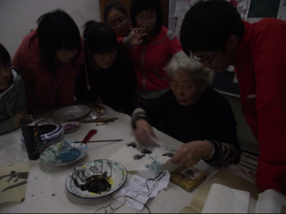接着,同学们开始自己的书法和绘画,老师们现场指导,评论同学们的书法绘画水平,并给出自己的建议。同时,老师们还解决了同学们思想上的困惑,分享自己宝贵的人生经验。老师们还赠与同学们自己的墨宝和绘画作品。最后,大家合影留念。
