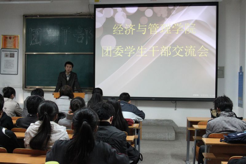 本报讯 2011年3月23日下午,经济与管理学院团委在教10-218召开学生干部交流会,学生会副部以上学生干部参加了讨论交流,会议由团委书记郭瑞鹏老师主持。