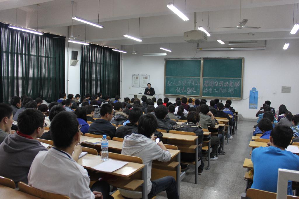 机仪学院团委于3月9日在曲江校区10-319举办第十二届团日活动启动仪式。机仪学院团委书记赵崇阳老师及学生干部参加了此次会议。赵崇阳老师针对团日活动的开展和学生干部能力锻炼两个方面作了发言。他对学院历届团日活动取得的成果作了充分的肯定,同时也指出了团委工作中需要改善和加强的方面。他指出,各团支部应在院团委的带领下,积极参与团日活动,加强班与班,同学与同学之间的交流,把团日活动不仅当作一次任务,更作为一个交流的平台,在活动中充分发挥出自己的能量。