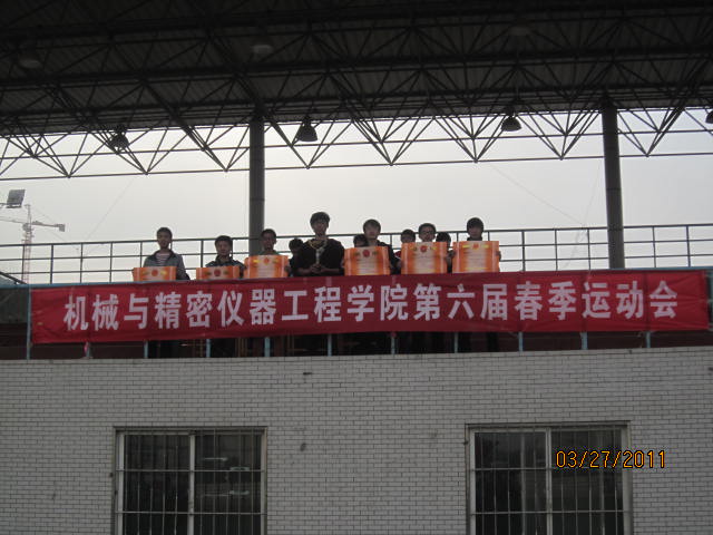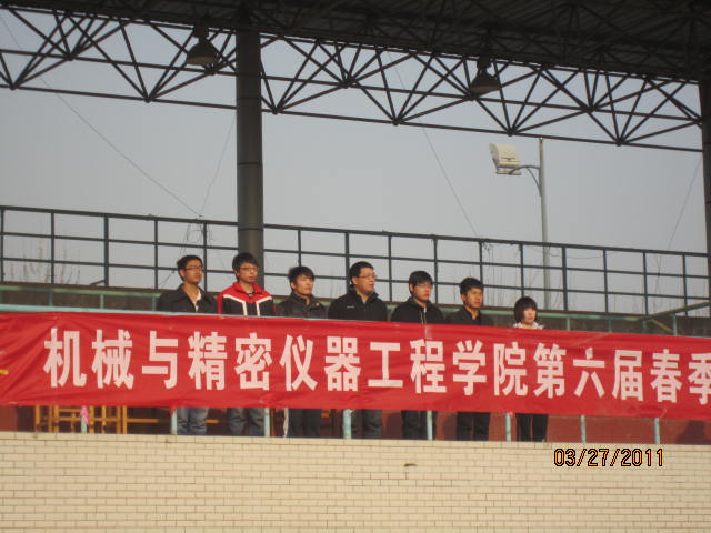 本报讯 3月27日,机械与精密仪器工程学院在曲江校区操场成功举办了第六届春季运动会。院团委书记赵崇阳老师、院学生会主席乔朋博、团委副书记王卓、社团联合会主席柴星以及各常委出席了开幕式。