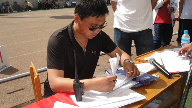 晴空万里,闪烁着运动健儿们充满激情的汗水,弥漫在空气的是久久停止不息的热情的鼓舞之声。本着公平、公正、公开的原则,裁判老师们尽管烈日在身,重复工作,但他们默默的付出一切,忠实记录运动健儿的成绩,为他们的付出而喝彩。