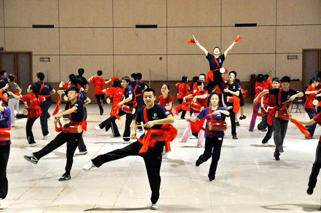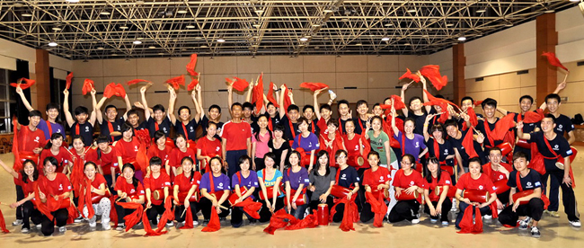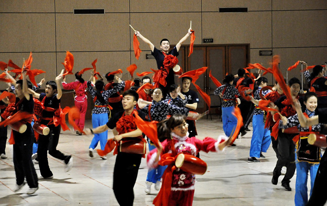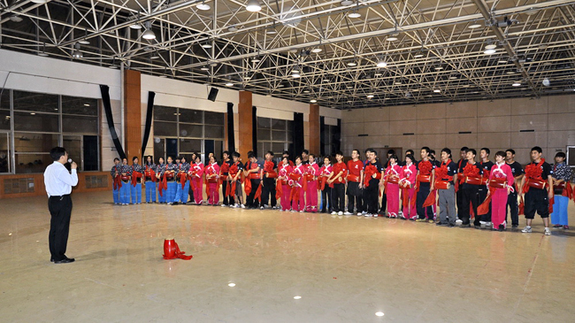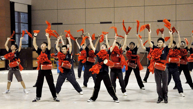 应用物理091班的胡海政和刘鑫,公共082班的张琛和公共092班的姚瑶是本次活动的学生负责人,他们平日除了要同大家一起排练,还要负责起通知和组织工作。因为腰鼓舞需要极强的身体力量来表达情感,所以为了将舞蹈完成的尽善尽美,绝大数同学的腰胯部都出现了大量淤青,有的同学还扭伤了脚部,但是每一次排练大家都全情投入,没有丝毫怨言。刘鑫告诉记者,经过长时间的努力排练,自己才真正理解了一分耕耘一分收获的含义,付出了就会有回报,作为学校的代表,为了学校的荣誉,再苦再累也觉得很值的。