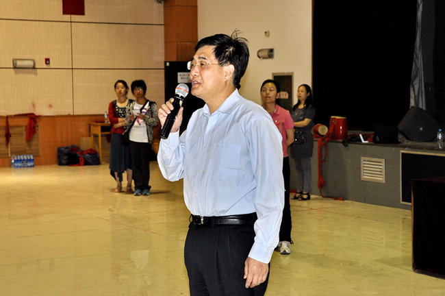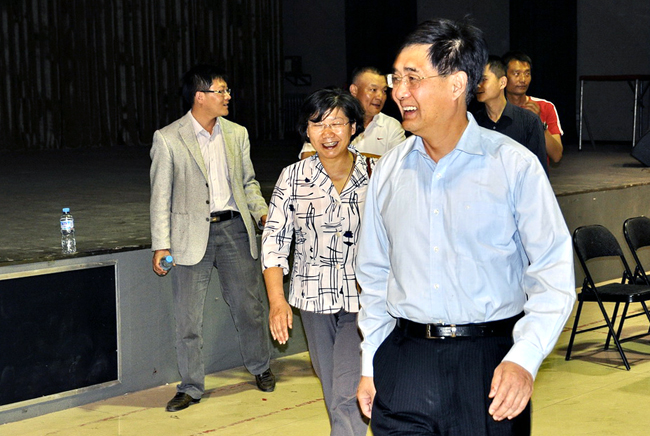 4月26日晚7时许,刘丁校长、杨萍副书记来到排练场,观看并慰问了全体参演的老师和演员。校长刘丁在讲话中指出,此次“五月的鲜花“全国大学生“永远跟党走“校园文艺演出是我国建党90周年系列演出之一,我校作为陕西省代表参加此次活动是展示我校师生风采的绝好机会,也是我校在十二五期间为实现向高水平大学跃进,力争做到全省最好、全国最好,做好方方面面工作的目标的重要契机。刘丁校长还送给了即将启程的同学老师们提出三点希望。一是希望大家珍惜此次在中央电视台演出的机会,在年轻的时候为自己多多积累宝贵的人生经验。二是希望同学们精心排练,听从指挥,精益求精,时刻不忘自己肩上的重任,做好西理工的宣传者,争取把最好的精神面貌展示给全国人民。三是希望老师同学们吃好,睡好,安全第一,高高兴兴去,健健康康回,期待大家再创佳绩,凯旋而归。