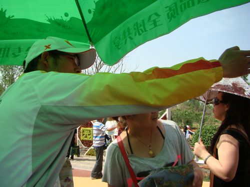 话说铁人王进喜在大庆油田兢兢业业,刻骨工作被标为模范,今天,在西安浐灞,也有那么一组人,每天恪守在自己的岗位上,用真心服务着到这里来的每一位游客,这就是在国内园服务的我校志愿者—E41组。每天这里的人流量不亚于广运门、创意馆等地,问路的,指方位的,还要应付很多突发事件,工作量只能用一个字来形容—大。他们从下午三点起开始站在自己的岗位上,除了吃饭半个小时外(吃饭时一半人前去领饭,另一半留守岗位),一直到晚上9:50才能撤岗,在太阳下整整站立一天,精疲力尽是每一个人的真实写照。