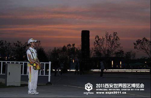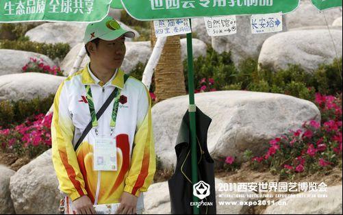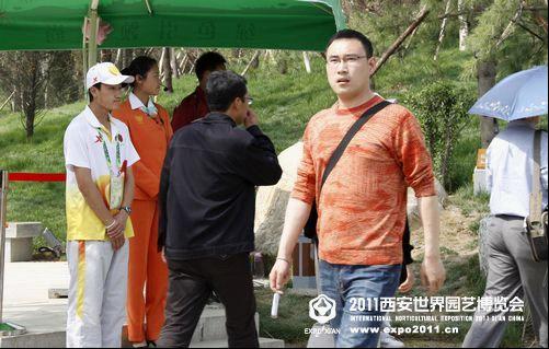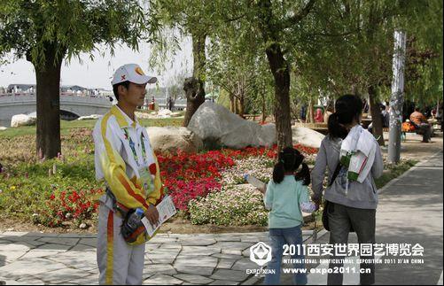 长安塔下,自然馆门口游客最集中,问路也最多的地方,他在提醒着游客他们的目的地在哪