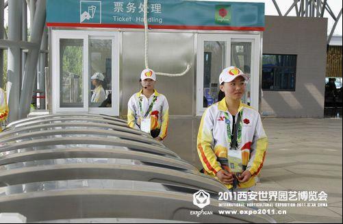 次人口游客虽然比较少,但在那里的志愿者也是一直站着,他们不能坐下,他们的职责告诉他们,不能坐下