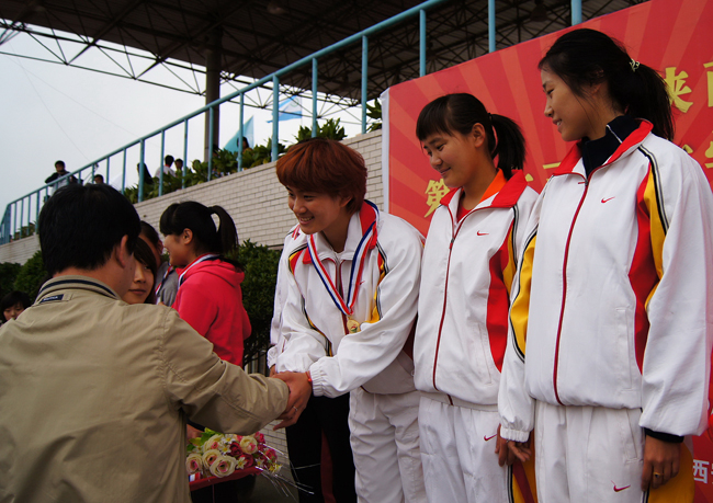 参加本届省运动会的运动员分别来自经济与管理学院的体育特长生,包括为我校女子100米再添银牌的老将韩文娜。初次见到韩文娜,给人的第一印象就是活泼开朗,采访过程中,韩文娜始终保持着笑容。韩文娜是公共事业管理的学生,但她却少有文科生气质,与之俱来的是巾帼不让须眉的霸气。在本次4×400米接力中,韩文娜充分发挥自己的能力,积极与队友合作,取得了骄人的成绩。“如果没有汪佳妮、李艳芳和孙艳的配合,我们不会取得这么好的成绩。”韩文娜激动地对身边的好友说,并与她们一一拥抱。男子组方面,来自工商管理的李洋、公共事业管理的崔登辉、张鹏和经济学的耿鹏飞四人默契配合取得了优秀的成绩。