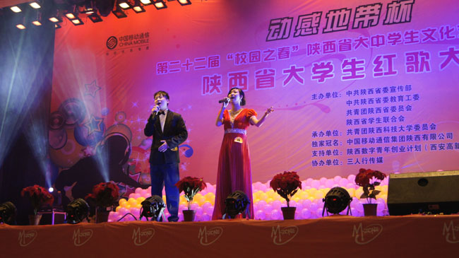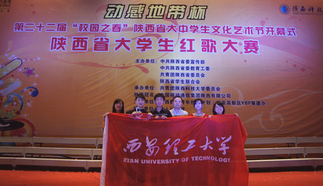 本报讯 为庆祝中国共产党建党90周年,辛亥革命胜利100周年,由中共陕西省委宣传部、中共陕西省委教育工委,共青团陕西省委员会,陕西省学生联合会主办,共青团陕西科技大学委员会承办的第二十二届“校园之春”陕西省文化艺术节暨陕西省大学生红歌大赛于5月24日晚在陕西科技大学体育馆隆重举行。