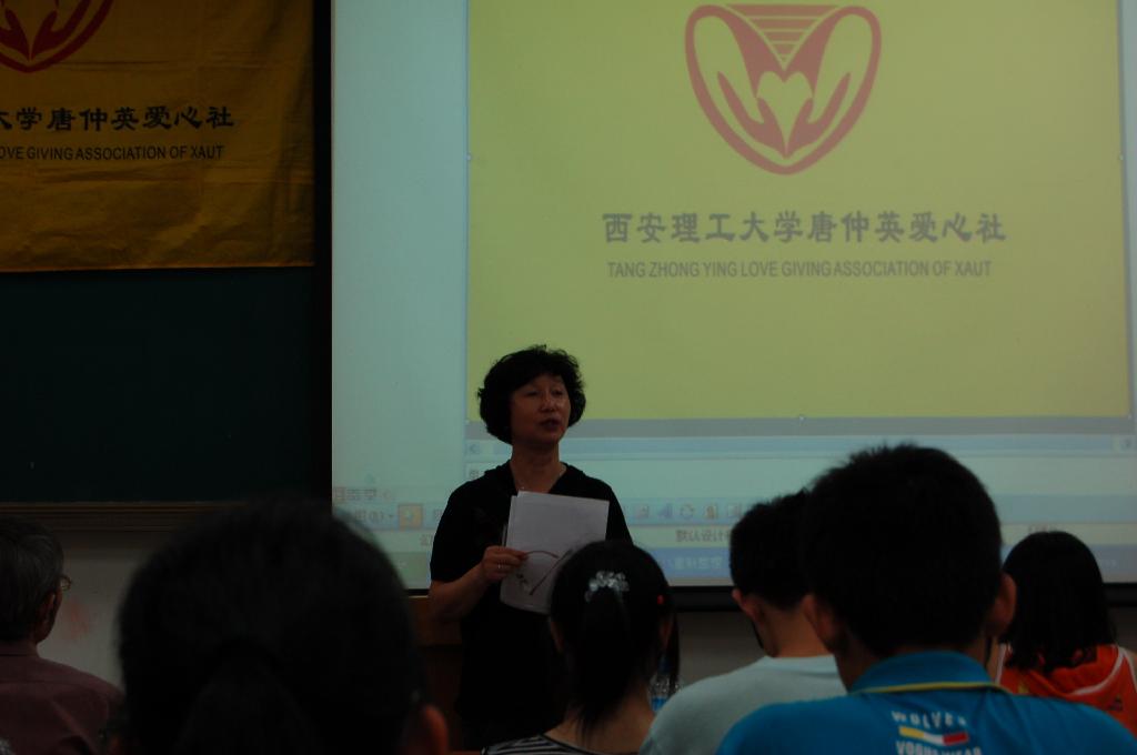本报讯 2011年5月25日晚上七点半,西安理工大学唐仲英爱心社新社员见面会在曲江校区教10-210准时拉开帷幕,基金会指导老师田苏亚老师,孔祥秦老师,学生处指导老师高荣云老师出席了本次会议。