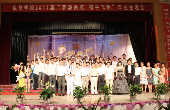 本报讯 2011年6月28日晚,由机仪学院主办的2011届“梦想启航,携手飞翔”欢送毕业生联欢晚会在金花校区大学生活动中心隆重举行。副校长李言,机仪学院院长华灯鑫,副院长崔亚辉,高峰,党委副书记、副院长邢凯,院办主任张文英,各系主任,毕业班导师,学工办全体辅导员及全体2011届毕业生出席了本次晚会。
