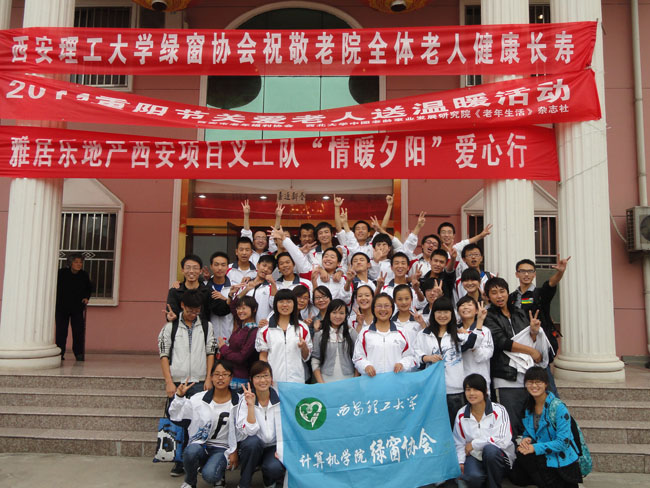 本报讯 2011年9月25日下午两点半,计算机学院绿窗协会响应陕西省慈善协会的号召,策划并组织的“九九重阳敬老日”活动在曲江福利院拉开了帷幕。参与本次活动的有新加入绿窗协会的的大一新生、大二的部分骨干成员以及曲江福利院的各位老人们。