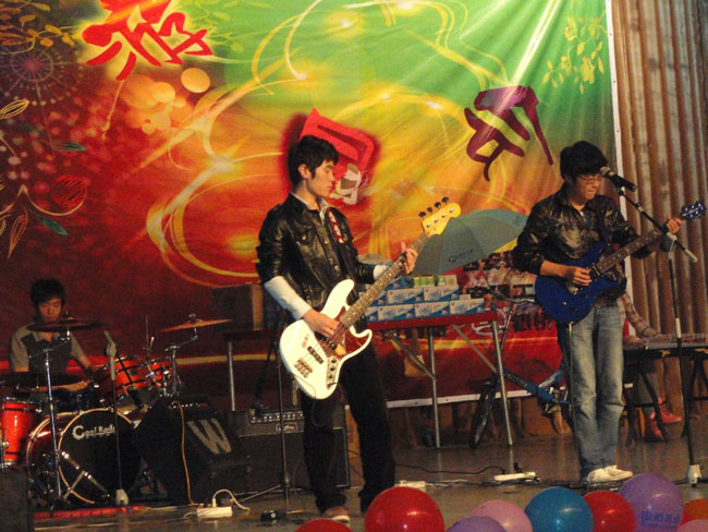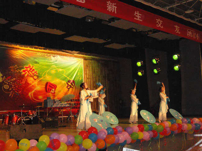 在礼花和彩球点缀的舞台上,开场节目一一呈现。柔美古典的舞蹈《青花瓷》,引全场动容;曲风各异的歌曲串烧,带来掌声阵阵;理工大“锈”乐队的两首摇滚乐曲,张扬青春,震翻全场。